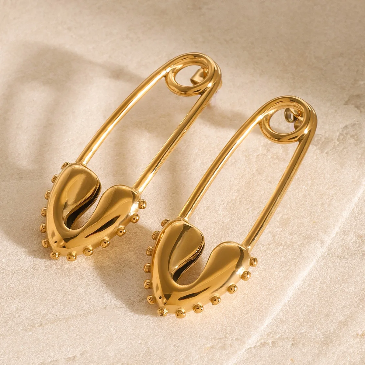 Trendy Stainless Steel Pin Earrings Hypoallergenic Jewelry 18k Gold Heart Pin Huggie Hoop Earrings for Women